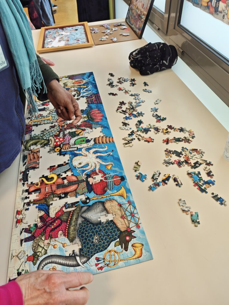 Le public était au rendez-vous, avec une belle présence de parents avec leurs bébés et de seniors, dans une ambiance douce et détendue, ce qui a favorisé les échanges entre visiteu-rs-ses et bénévoles. L’affluence n’était pas dense mais pourtant cela a peut-être été l’une des réussites de la journée : on a pris le temps de se parler, de s’asseoir, de jouer vraiment.